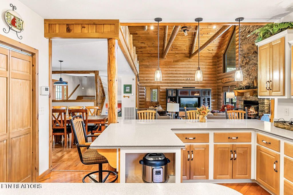 Tucked away in the peaceful side of the Smokies, this 3BR/3BA log cabin in Townsend delivers the perfect mix of rustic charm and modern comfort. Built from premium Western Red Cedar logs, this property is ideal as a primary home, second home, or short-term rental.Inside, you'll find soaring cathedral ceilings, exposed beams, and a stunning stone fireplace anchoring the open-concept living space. The kitchen features custom wood cabinetry, stainless appliances, and a large breakfast bar for easy entertaining. A versatile loft overlooks the main living area--perfect for a home office or additional lounge space.The primary suite offers a private retreat with an ensuite bath and direct access to a screened-in deck for year-round enjoyment. Two additional bedrooms each have convenient access to full baths, making the layout ideal for guests or renters.A standout feature is the fully insulated, soundproofed workshop--complete with ventilation and all tools included--perfect for woodworking or hobbies.Outside, enjoy the expansive wraparound deck surrounded by peaceful woods, ideal for morning coffee or winding down after a day in the mountains.