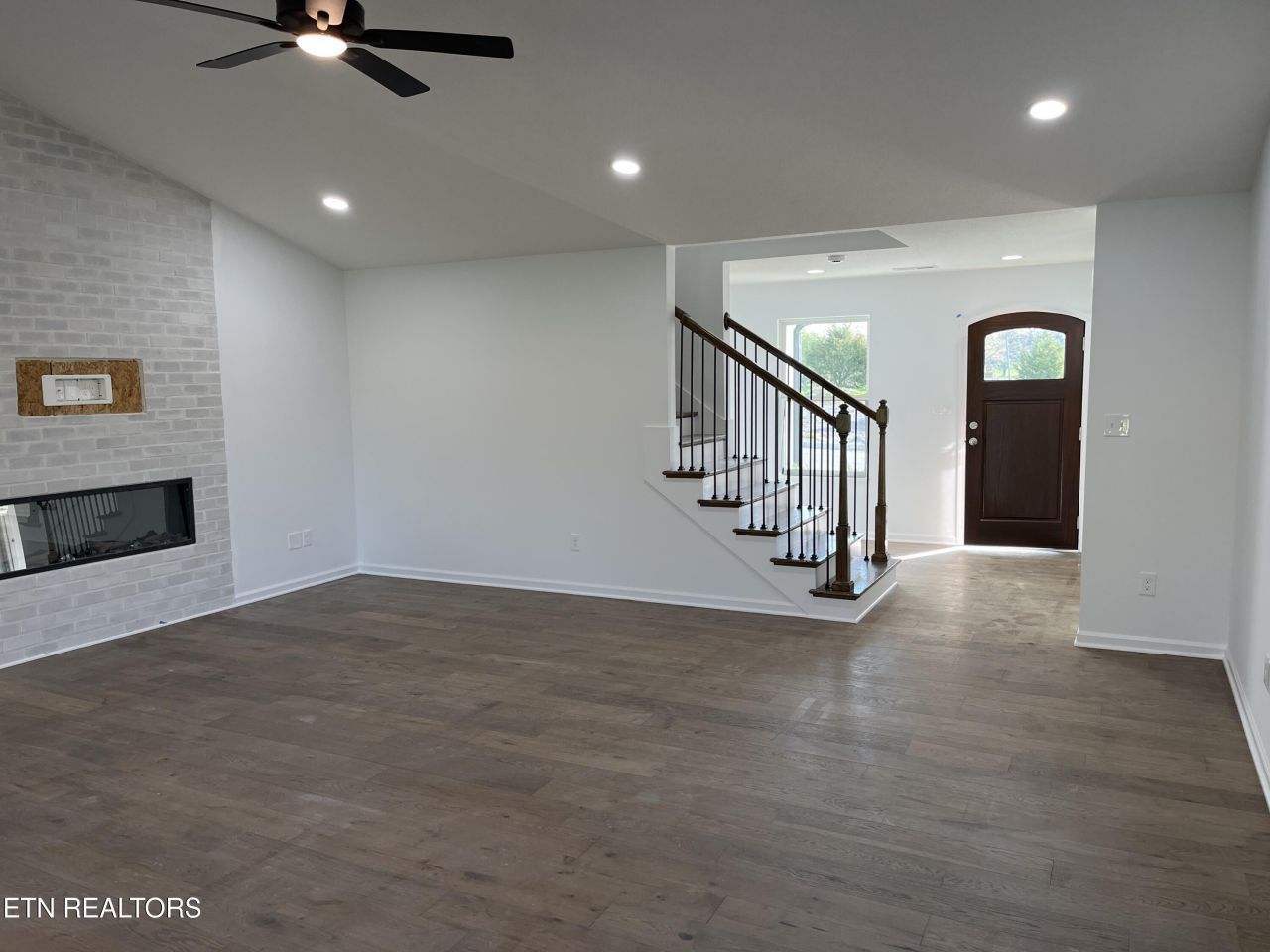Welcome to the elegant Muirfield floor plan with the stunning Chateau front elevation. This home showcases timeless architectural details including a curved roofline, dormer with curved eaves, solid wood arched mahogany front door, wood-grain garage door, and three mulled windows in the front bedroom.Inside, you'll find a thoughtfully designed layout with 4 bedrooms and 3 full baths. The bonus room is the spacious fourth bedroom complete with walk-in closet and private bath. The gourmet kitchen features granite countertops, granite backsplash, and stainless-steel appliances. Kitchen opens seamlessly to the dining and living areas with rich wood flooring.The primary suite offers a large walk-in closet and a cultured marble shower for a spa-like retreat. Additional highlights include wood stair treads with oak rail and iron balusters, a vintage natural sliding barn door, luxury design closets, and ceramic tile in all bathrooms and laundry.Outdoor living is a breeze with the 10 x 20 covered back patio featuring dual ceiling fans - perfect for entertaining. The garage includes dedicated storage/workshop space, and the landscape package adds curb appeal.Community details: Property taxes not yet assessed. HOA initiation fee of $300 due at closing; annual HOA dues payable July 1.