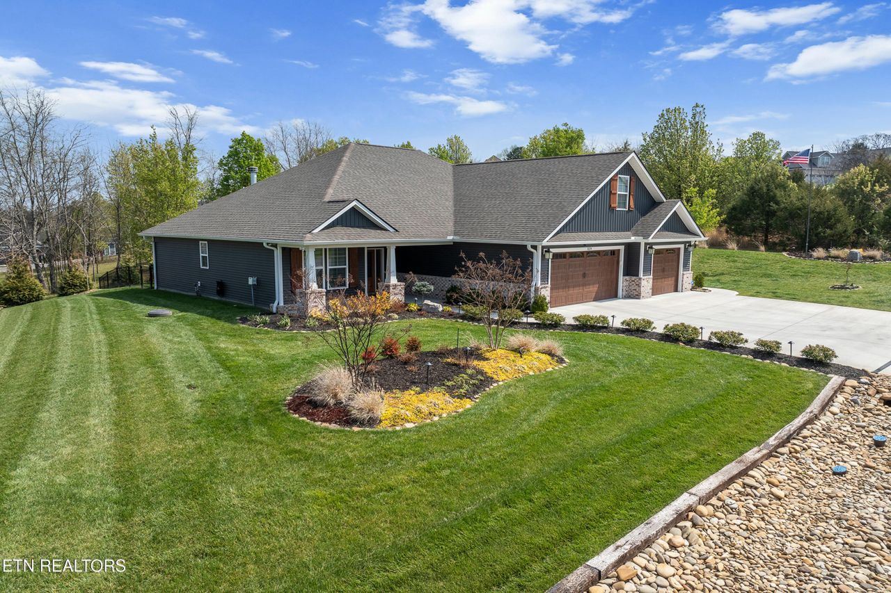 **Experience luxury redefined in this immaculate, level-lot estate where every detail in this home is masterfully curated. A sanctuary of sophisticated design and effortless functionality** - Property Details: 4 Bedroom (1xOffice) 3 Bathrooms, 3-Car Garage with/ epoxy flooring , Dual zone HVAC, Whole Home Humidifier (AprilAire), Whole Home Hot Water Recirculation system, Open Floor Plan Concept, Remote controlled Fireplace w/ gas insert-upgraded to a three burner capacity, upgraded ceiling fans. Home Total: 2,338 SF. Custom Kitchen Cabinetry w/ soft close doors and dovetail drawers and under cabinet lighting. High-End Stainless Steel GE 'Cafe' Appliances. Gas Range w/ Hood Vent. Refrigerator, Quartz countertops in Kitchen and Bathrooms. Hardwood flooring 1st floor and LVP in upstairs Bedroom, Tile flooring in Bathrooms and Laundry room. Screened in porch with tile flooring and tiled patio with grilling composite upper deck. Added propane gas line professionally installed and fully compliant to code under cooking deck. Fenced backyard. Level Lot, professional manicured landscaping- irrigation system, and landscape lighting surrounding the house. 120 gallon propane buried gas tank (rented) on property-Provider Suburban Propane. Home Description: Step inside to a bright, open floor plan featuring exquisite craftsmanship at every turn with soaring spaces anchored by stunning wide-plank hardwood flooring that flows seamlessly throughout the home. The great room greets you with an awe-inspiring vaulted ceiling anchored by a massive timber beam, and a floor to ceiling stone surround fireplace, creating a space that is both grand and grounded. This architectural elegance continues into the master suite, where a beamed ceiling adds a touch of rustic warmth to your private retreat. The stunning kitchen flows seamlessly into the living area designed for entertaining, all framed by an abundance of oversized windows so that natural lighting drench the home. The transition from indoor to outdoor living is effortless. You step out onto your private screened porch or head to the grilling patio for an evening of entertainment. The backyard oasis combines a fenced backyard with modern durability of composite decking with the elegant cleanable surface of a tiled patio, centered around a safe, professionally installed code compliant gas set-up for the ultimate outdoor living experience. Function meets high end form in the kitchen and beyond. Tucked off the culinary center is a spacious walk-in pantry, while the primary suite offers the ultimate convenience: a walk-thru closet that leads directly into the laundry room. Guests will feel right at home in the upstairs private bedroom, complete with its own full bathroom. For the hobbyist and adventurer the oversized 3-car garage is a dream-leaves no detail overlooked - features custom cabinetry throughout, epoxy coated flooring, a dedicated workshop/tool room, an integrated Golf -Cart bay, and abundant storage for golf, fishing, hiking, lake and/or other gear, Discover the pinnacle of East Tennessee living in this impeccably designed, ''have-it-all'' residence, located in the heart of a premier, close-knit active community. Enjoy fantastic sunrises and fiery sunsets. Kathite neighborhood of Tellico Village is nestled on a one way on/off peninsula 820 acres surrounded by a pristine Tellico Lake at the foothills of the Great Smoky Mountains.Community Amenities: This is a golf cart friendly community of which offers Championship Kahite
